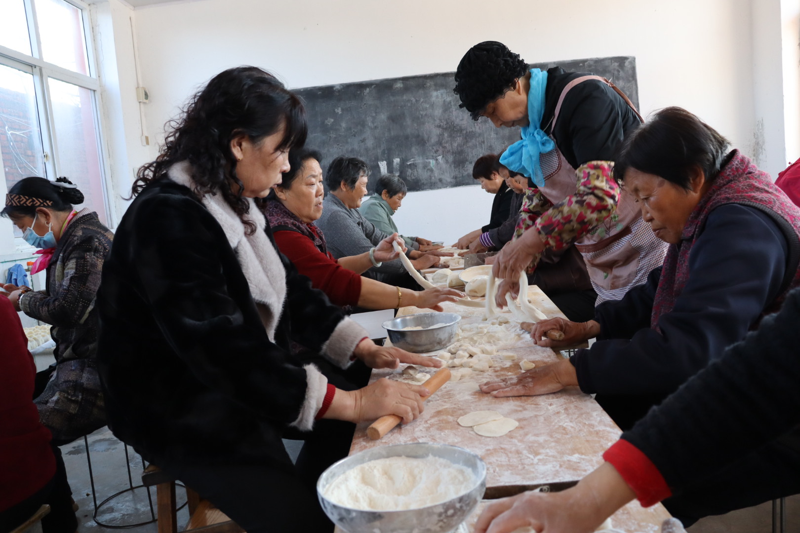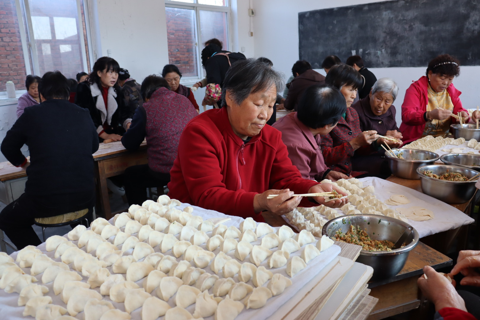 志愿者们围坐在老人身旁,闲话家常、嘘寒问暖,听老人诉说生活点滴,关心他们的身体安康,欢声笑语伴着饺香,在孟村小学里久久回荡。平日里安静的村落,因这场热闹的饺子宴,变得暖意融融、充满生机。